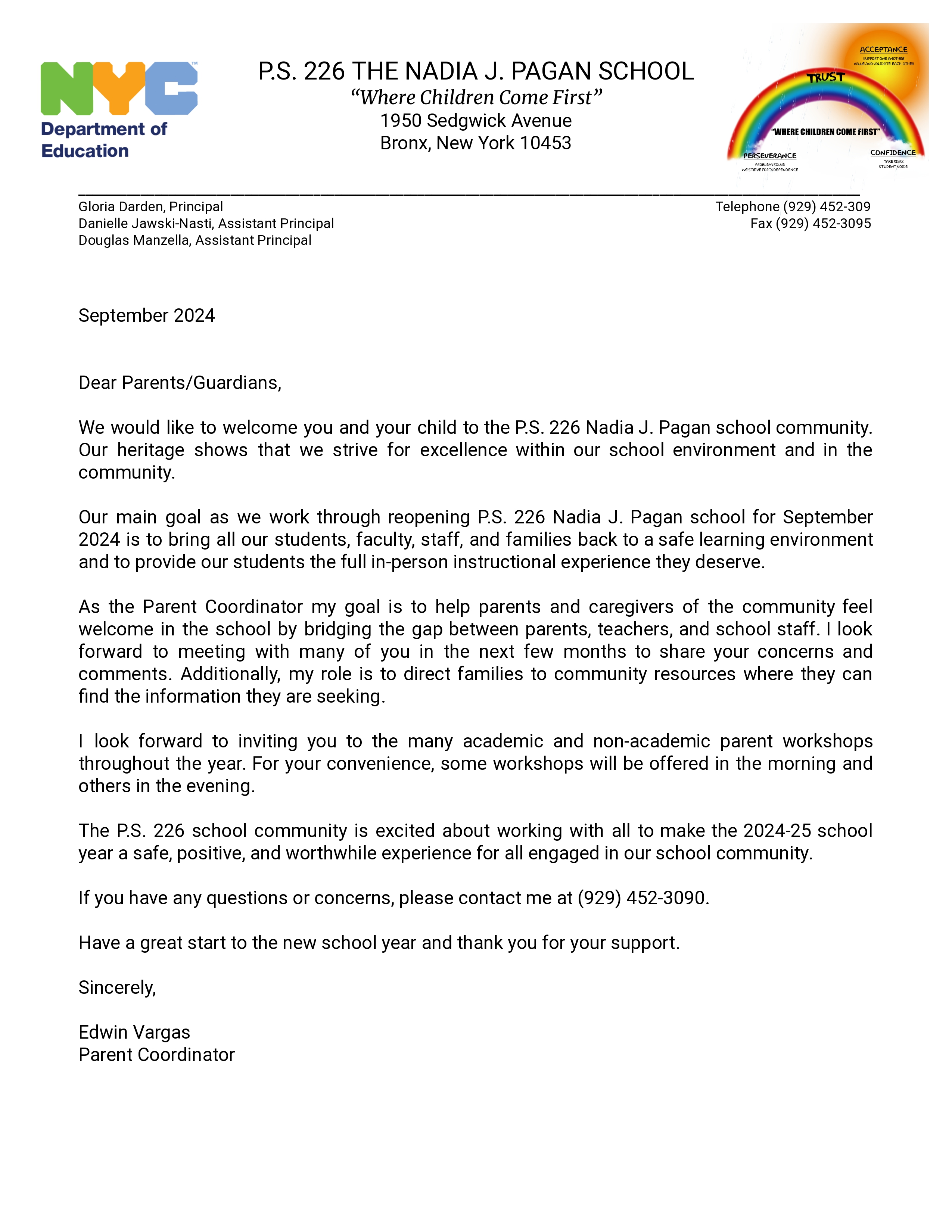 Helpful resources directly from P.S. 226 and NYC Public Schools