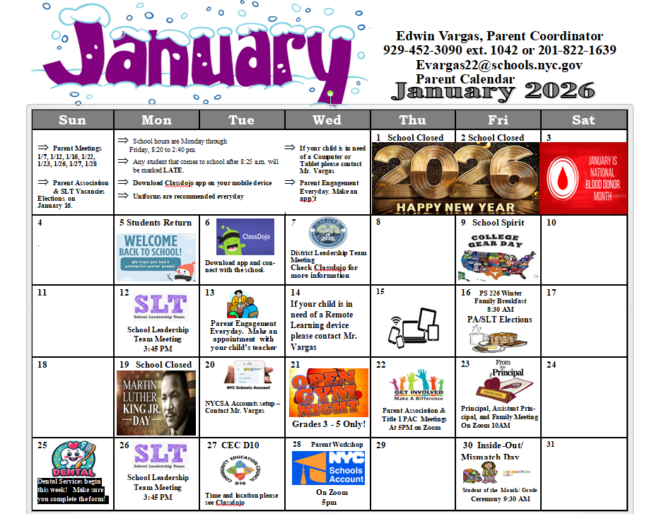 At PS 226, we celebrate every learner’s brilliance, fostering a joyful and inclusive environment where students grow academically, socially, and emotionally.